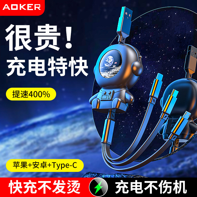 充电线三合一数据线伸缩一拖三快充三头适用苹果华为安卓Typec手机平板66W闪充ipad车载充电器线多功能通用6a