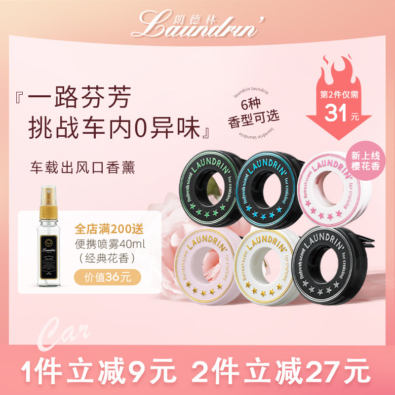 日本Laundrin车载香薰朗德林车饰摆件车用固体香膏汽车香水出风口
