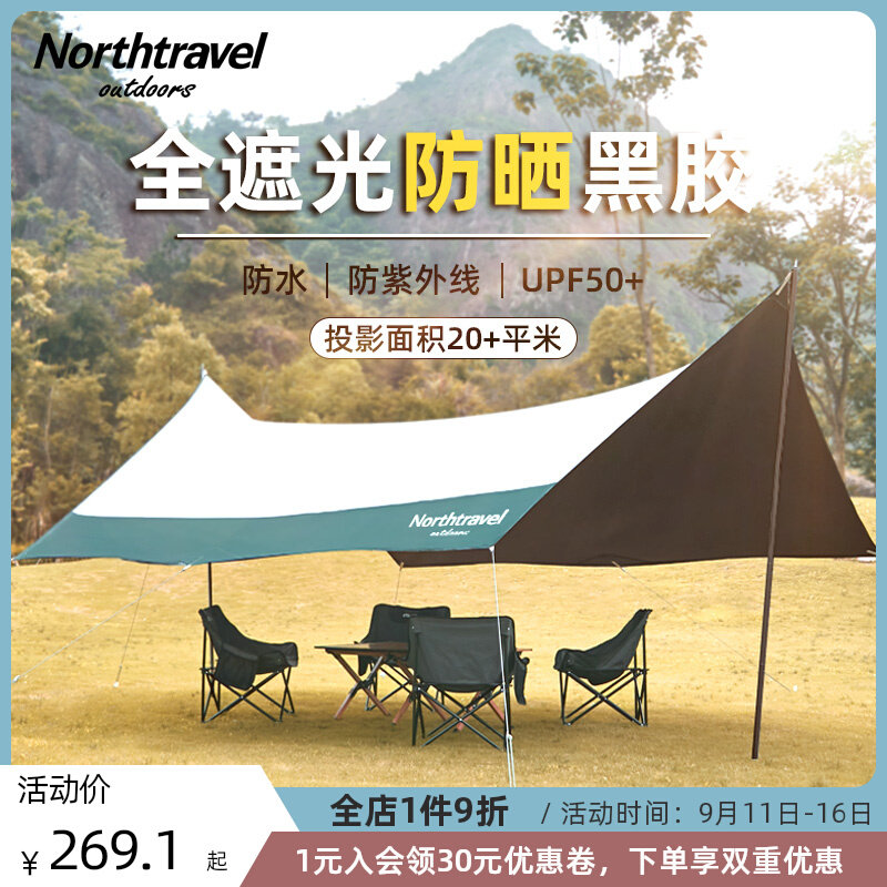 NORTHTRAVEL天幕户外黑胶凉棚防雨防晒帐篷超大号蝶形枫叶遮阳棚