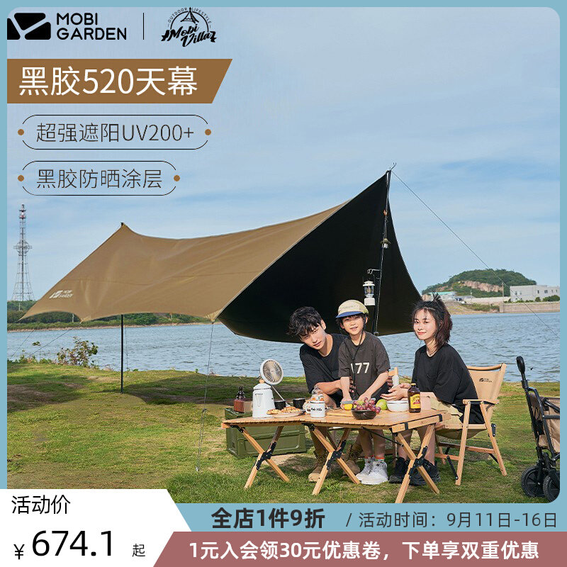 牧高笛黑胶天幕帐篷户外露营防紫外线遮阳凉棚便携式防雨水沙滩篷