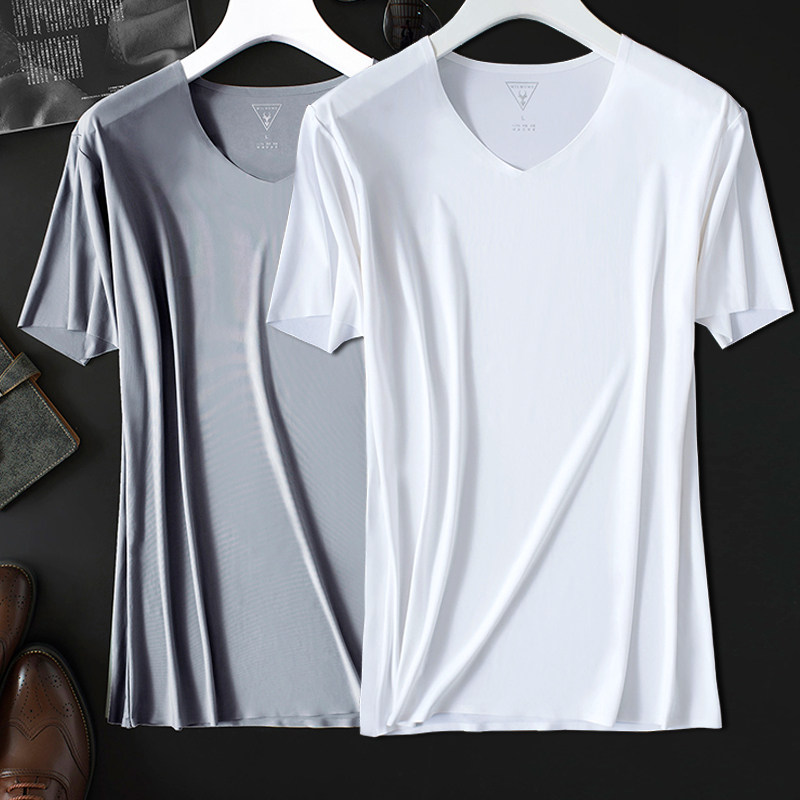 t恤短袖V领冰丝超薄速干半袖夏季纯白色宽松男大码男装体恤打底衫