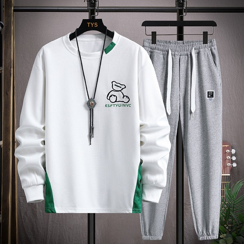 春秋长袖t恤套装男孩12-15岁初中学生13大童14青少年潮流圆领卫衣