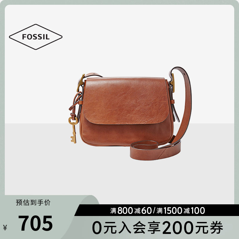 Fossil化石女包复古休闲包包真皮单肩包小包牛皮马鞍包斜挎包