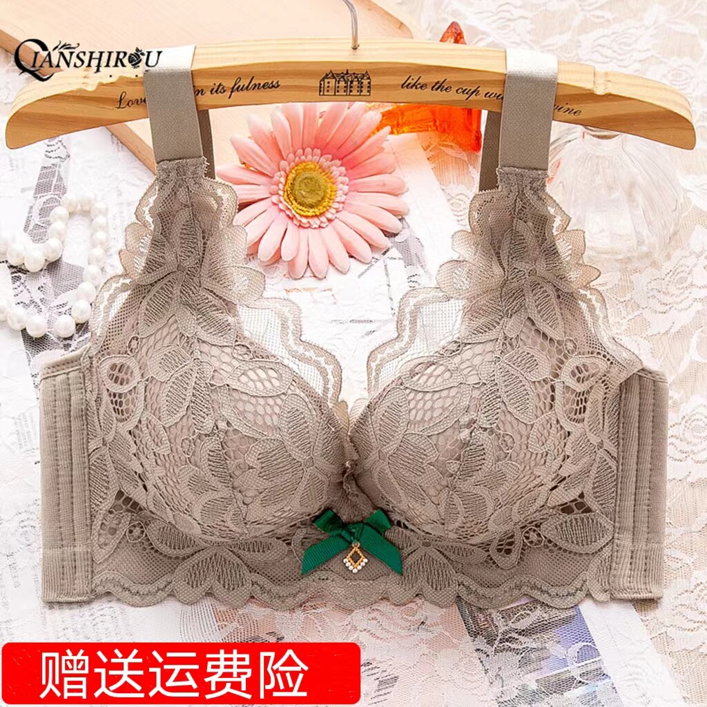 内衣女小胸聚拢厚款调整型上托收副乳胸罩加厚性感蕾丝无钢圈文胸