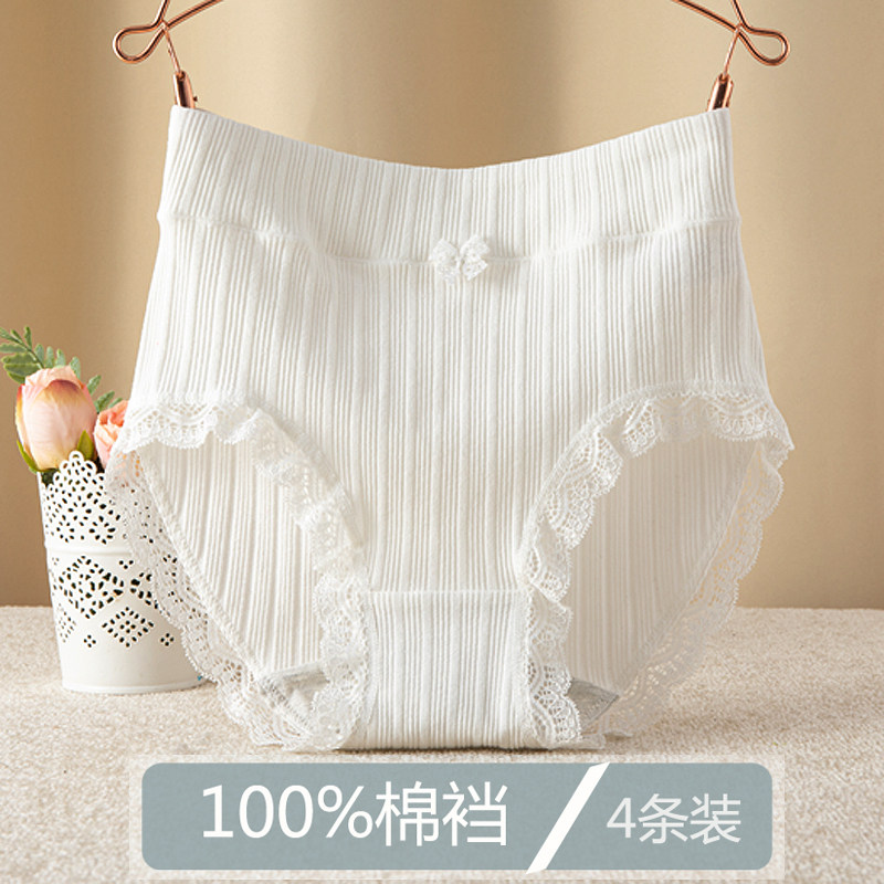 高腰内裤女士纯棉白色秋大码收腹包臀不夹裆不磨腿短裤100%全棉