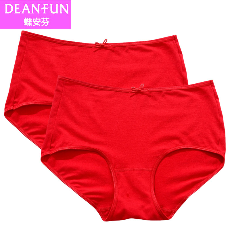 2条蝶安芬内裤女士红色本命年全棉品牌结婚喜庆中高腰大红内裤女