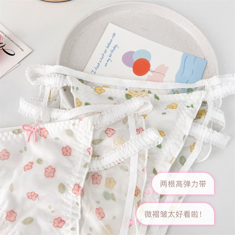 超纯欲高叉性感蕾丝网纱镂空内裤少女全棉纯棉裆低腰三角裤女生