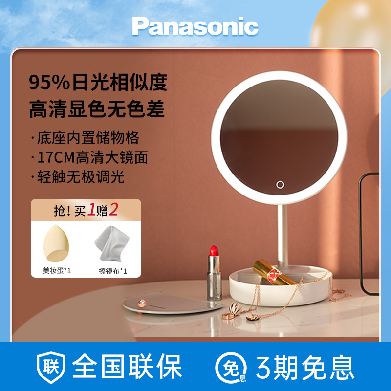 松下led化妆镜收纳盒一体带灯家用台式桌面梳妆镜子日光灯美妆镜
