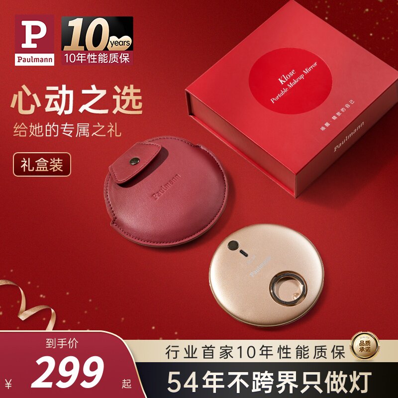德国柏曼化妆镜灯随身镜子带灯led梳妆美妆灯补光灯 礼物